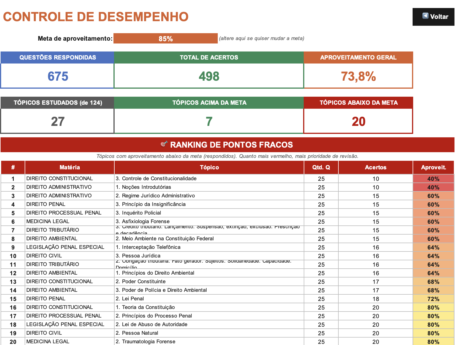 🗓️ Controle de Resolução de Questões — Só existe uma forma de saber quais pontos você precisa melhorar, e essa forma é através do seu controle de resolução de questões com o ranking dos pontos fracos.
